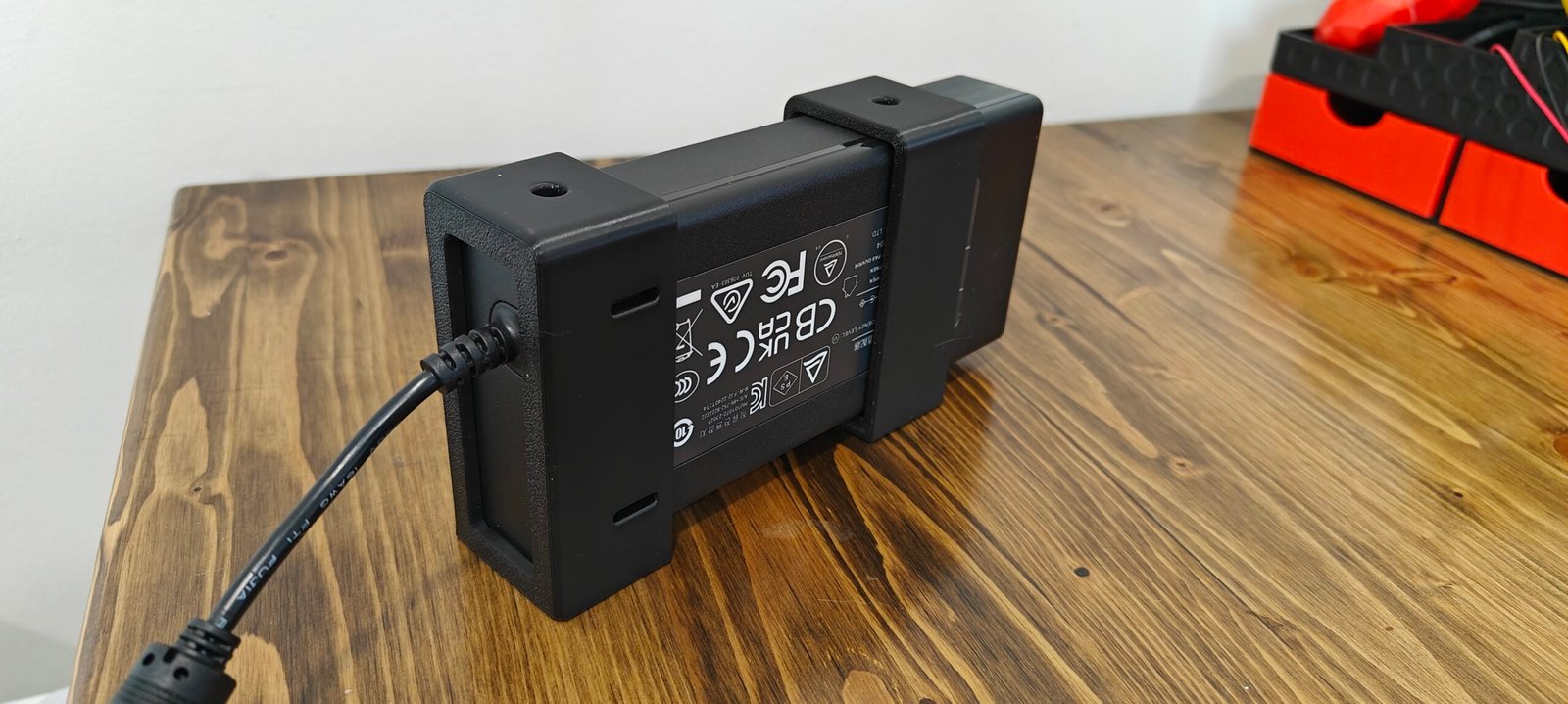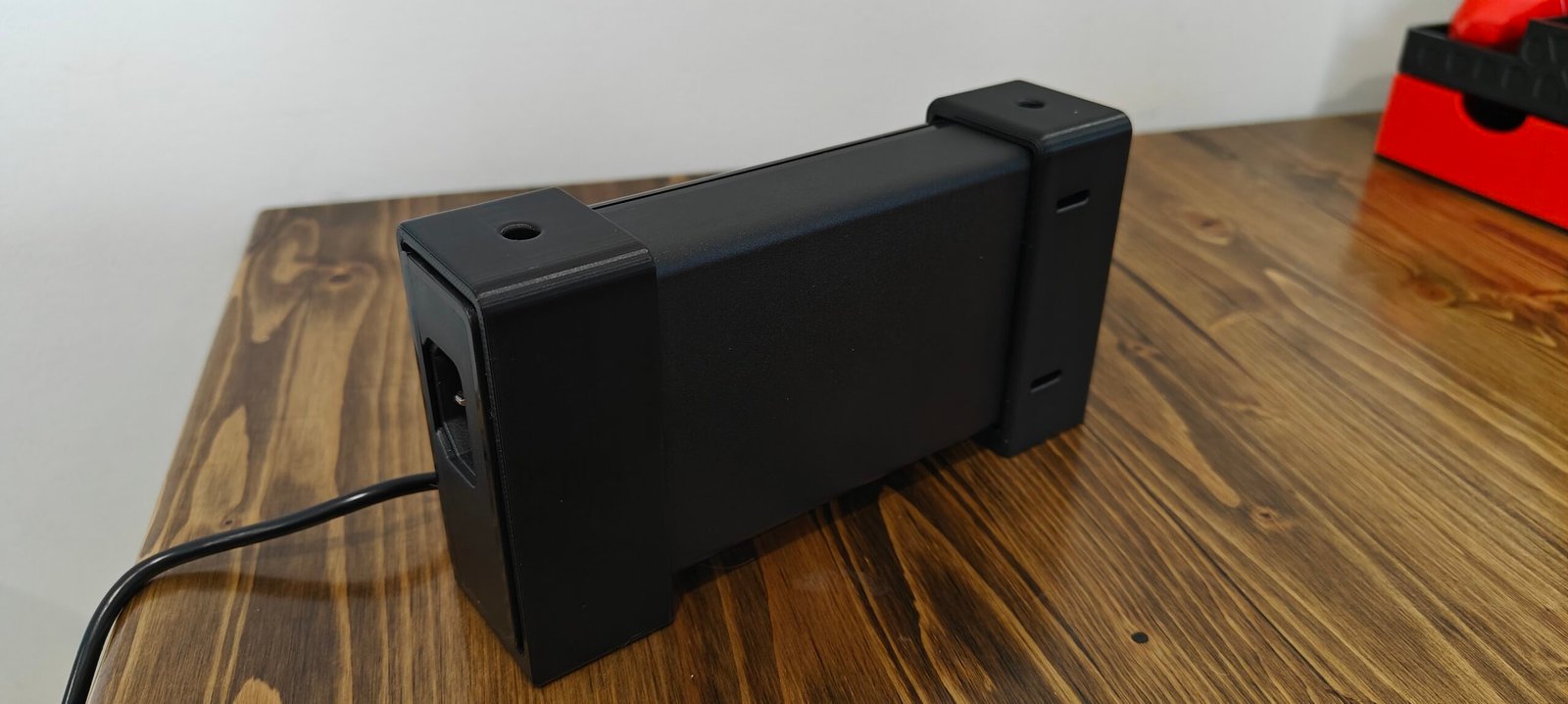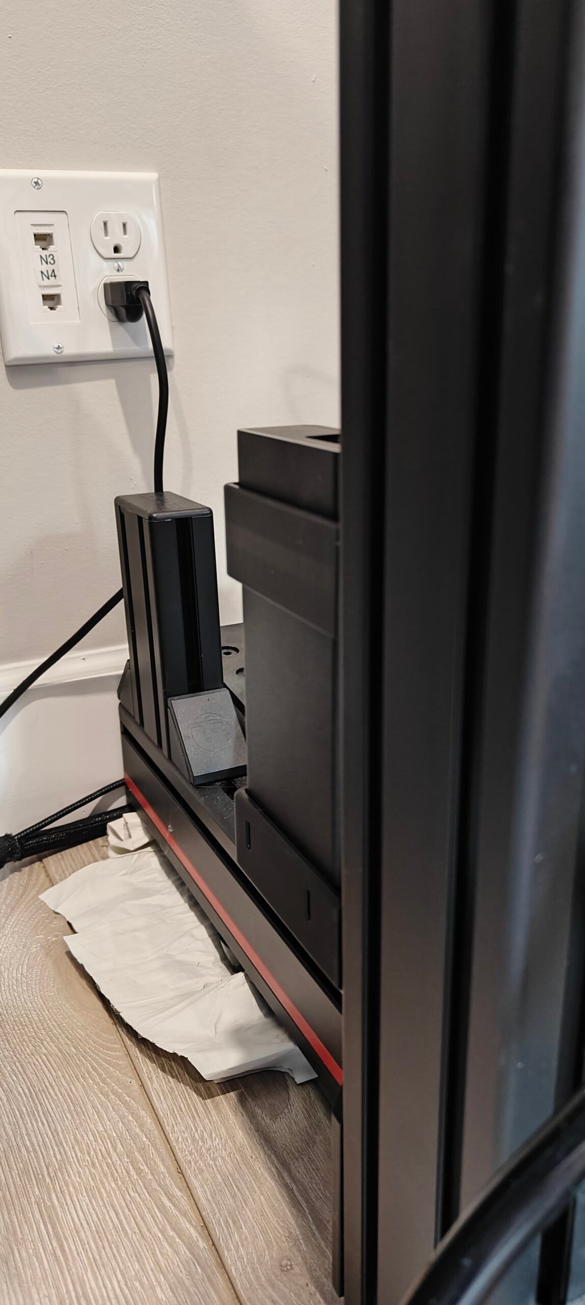 I recently upgraded to a Simagic Alpha DD wheelbase and I now have to worry about a power brick. One area that is out of the way and underutilized is the back of the wheel deck uprights so I decided to design a 40 series mount for that area. It turned out well, utilizing M6 flat head hardware and a two part system (base and strap), that allows the brick to mounted in any direction. No matter what, the power light will be visible on the bottom piece, and make sure you mount the strap so that it can always be visible as well.